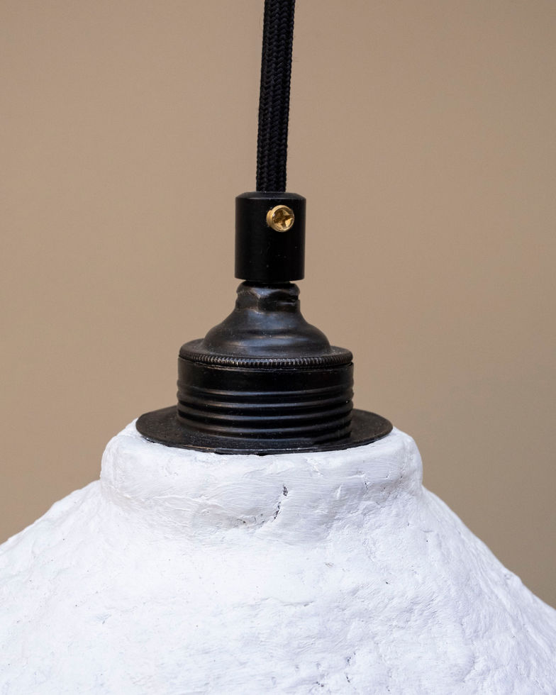Beyaz avize, Ege'nin serinliğinde; denizin berrak mavisiyle buluşan ilk ışıkların huzurunu yansıtır. Bir yatak veya kanepenin yanında tek parça olarak kullanılabilir ya da bir yemek masasının veya tüm bir odanın üzerinde kombinasyon halinde kullanılabilir. Sürdürülebilir bir yaklaşımın ürünü olan bu avize, geri dönüşüm kağıt hamurundan üretilmiş olup, sağlam yapısıyla hem güzel hem şık bir tercih sunuyor. Her bir ürün el yapımı olduğundan, birbirinden farklı ve benzersizdir.