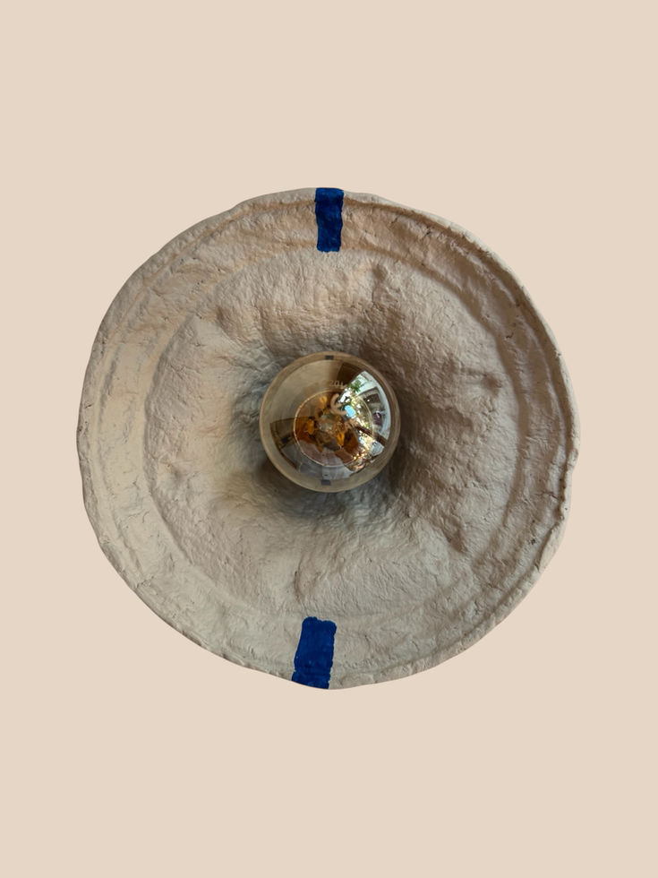Indigo Line, derinliğin ve sadeliğin zarif bir dengesini sunan çağdaş bir aydınlatma tasarımıdır. Doğal bej tonlar üzerine işlenen ince indigo mavisi çizgiler, her parçada içsel bir yolculuğun izlerini taşır. Geri dönüşüm kâğıt hamurundan elde şekillendirilen ham ve mat dokusu, her avizeye kendine özgü bir karakter kazandırır. Işıkla buluştuğunda ortaya çıkan loş ve huzurlu parıltı, bulunduğu mekâna dingin ve sıcak bir atmosfer katar. Indigo Line, yalın estetiği derin anlamlarla birleştirenler için zarif ve özgün bir tercihtir.